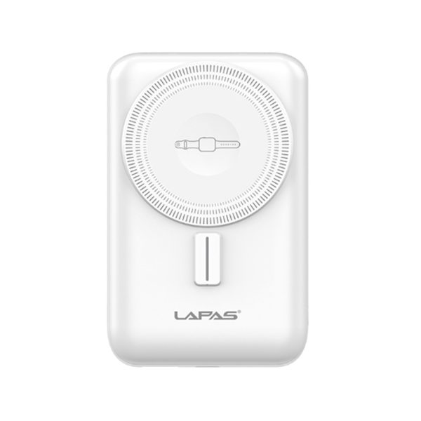 Lapas LP-PW004, 10000mAh kapasitesi, akıllı saat uyumlu kablosuz şarjı ve stand fonksiyonlu kompakt tasarımıyla günlük kullanım ve seyahatler için ideal bir powerbanktir.